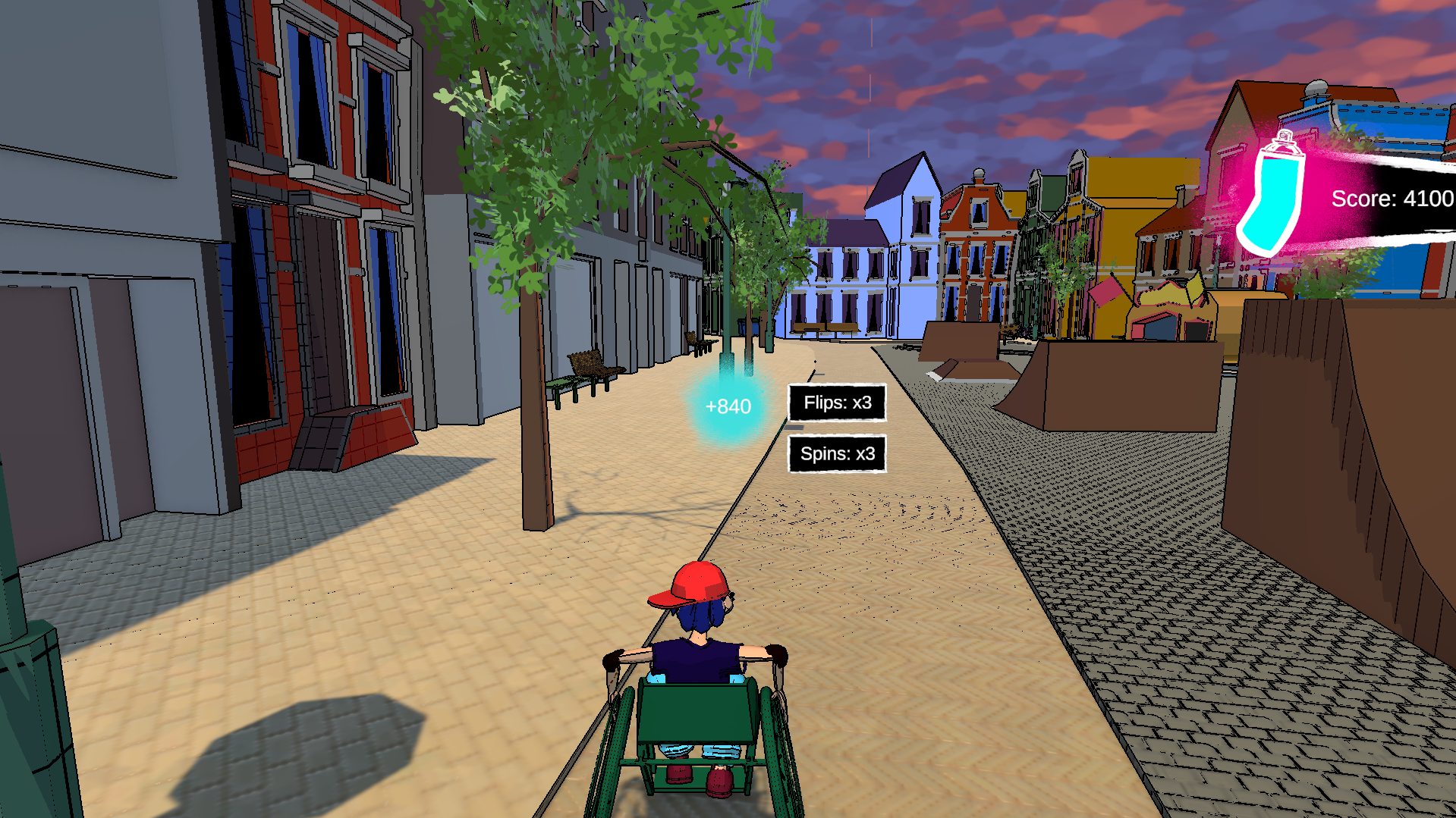 Sk8Chair is a wheelchair skating game where you play as Dash - a wheelchair user fed up with the inaccessibility of their city, determined to learn how to overcome any obstacles they might encounter by skating around/over them.